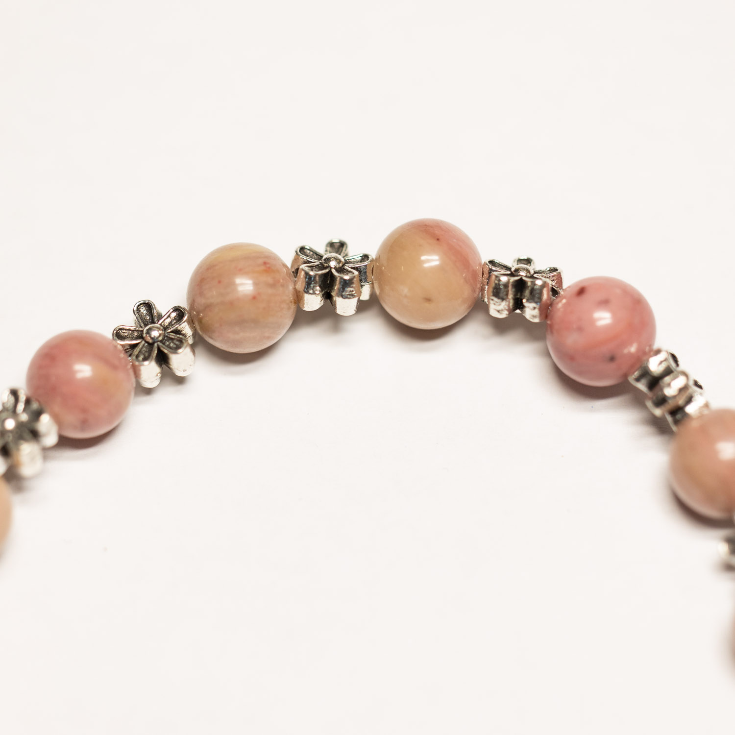 5295 Rhodonit Armband 8 mm mit Blumenelementen: 21.5 cm