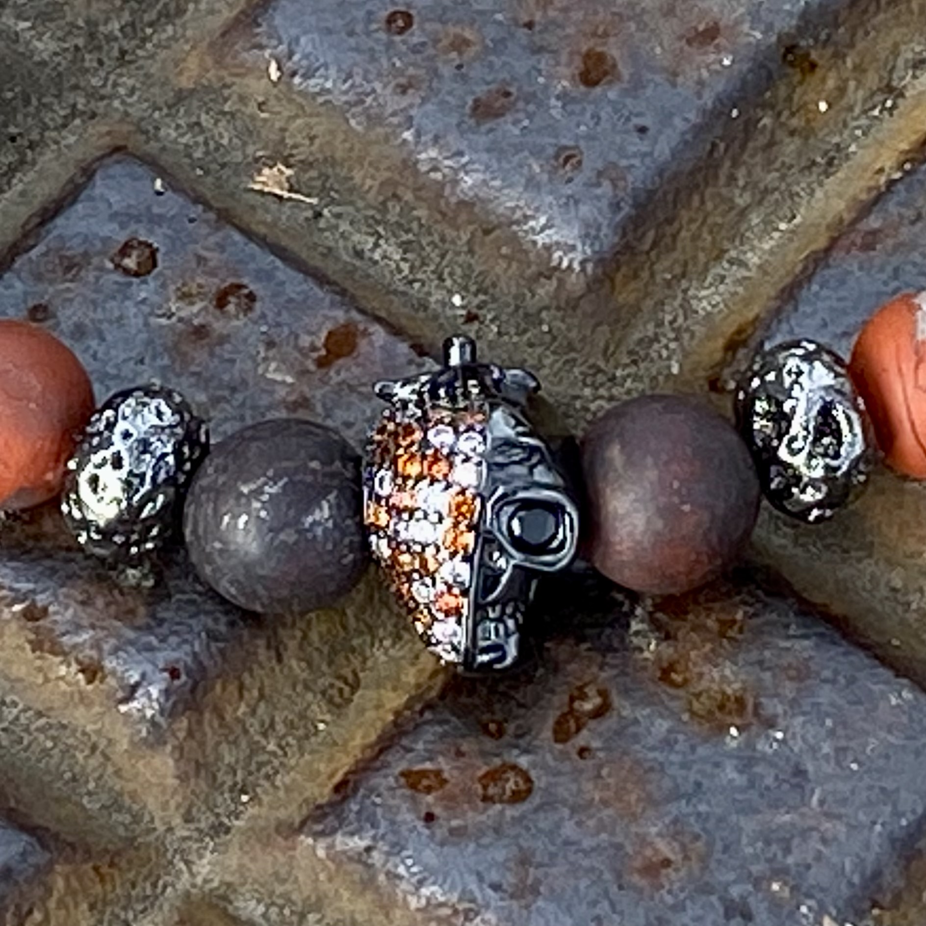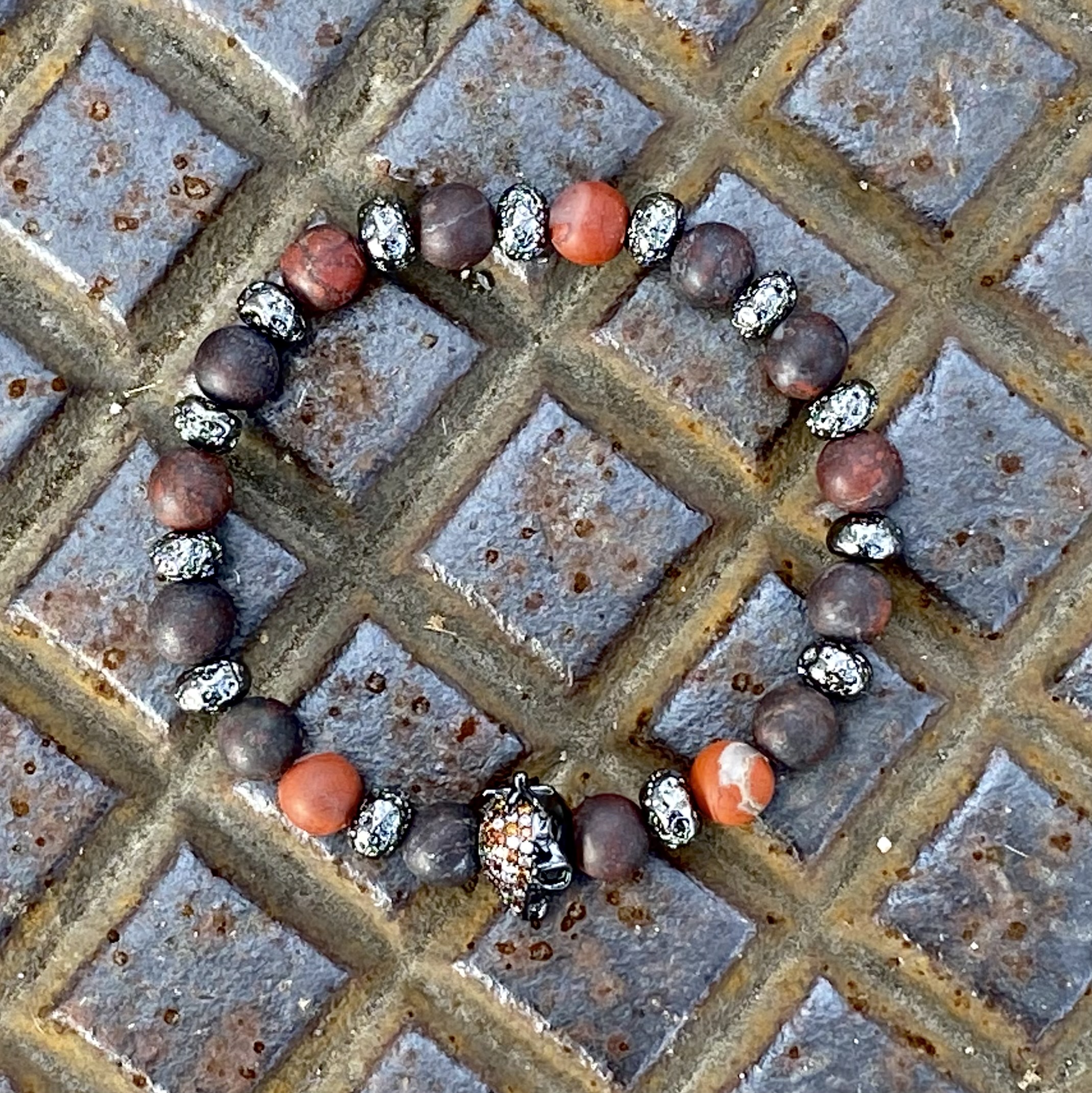5689 Roter Jaspis mit Totenkopf matt 8 mm: 20.5 cm