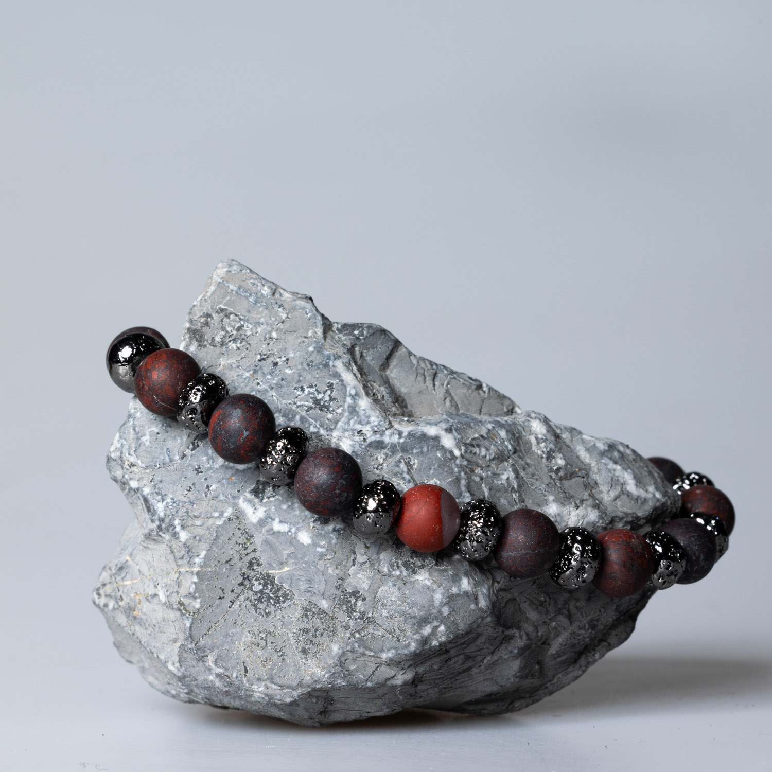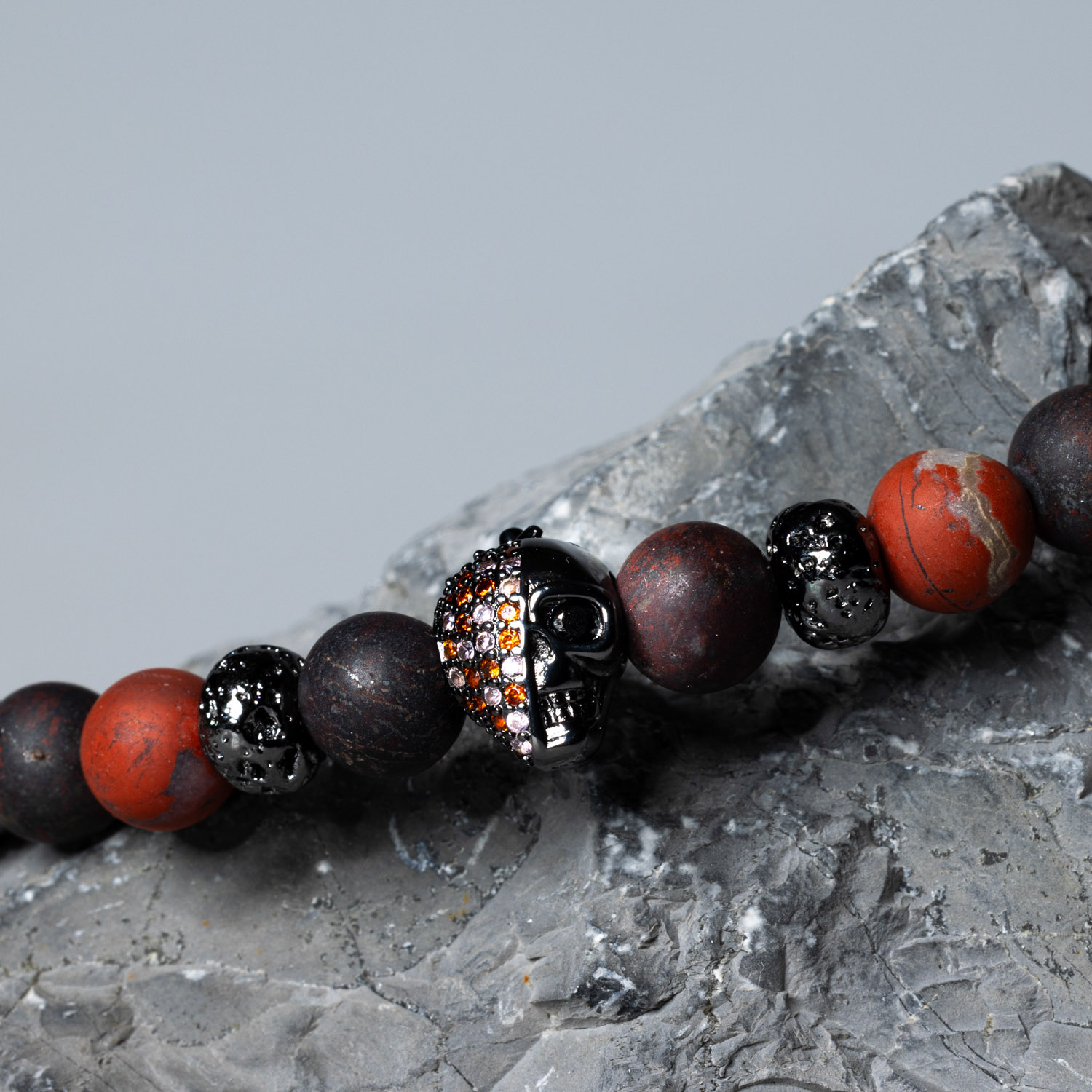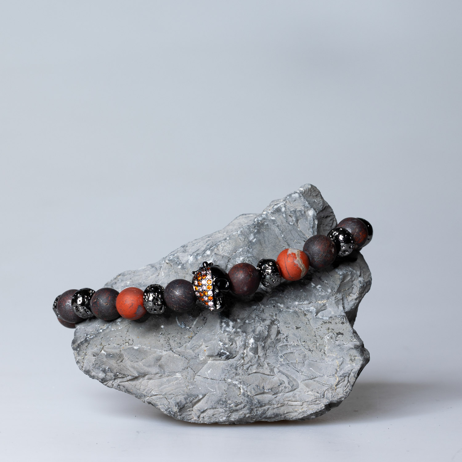 5689 Roter Jaspis mit Totenkopf matt 8 mm: 19.5 cm