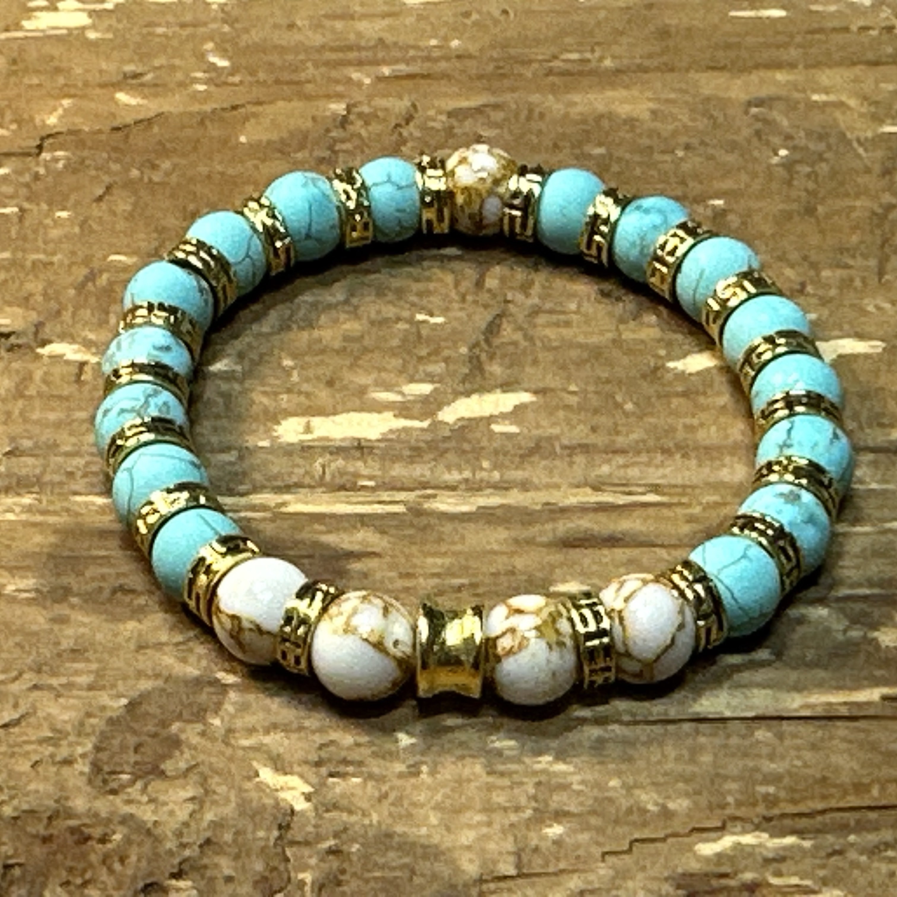 5643 Fake Türkis Stein mit 8 mm Steinen: 21.5 cm
