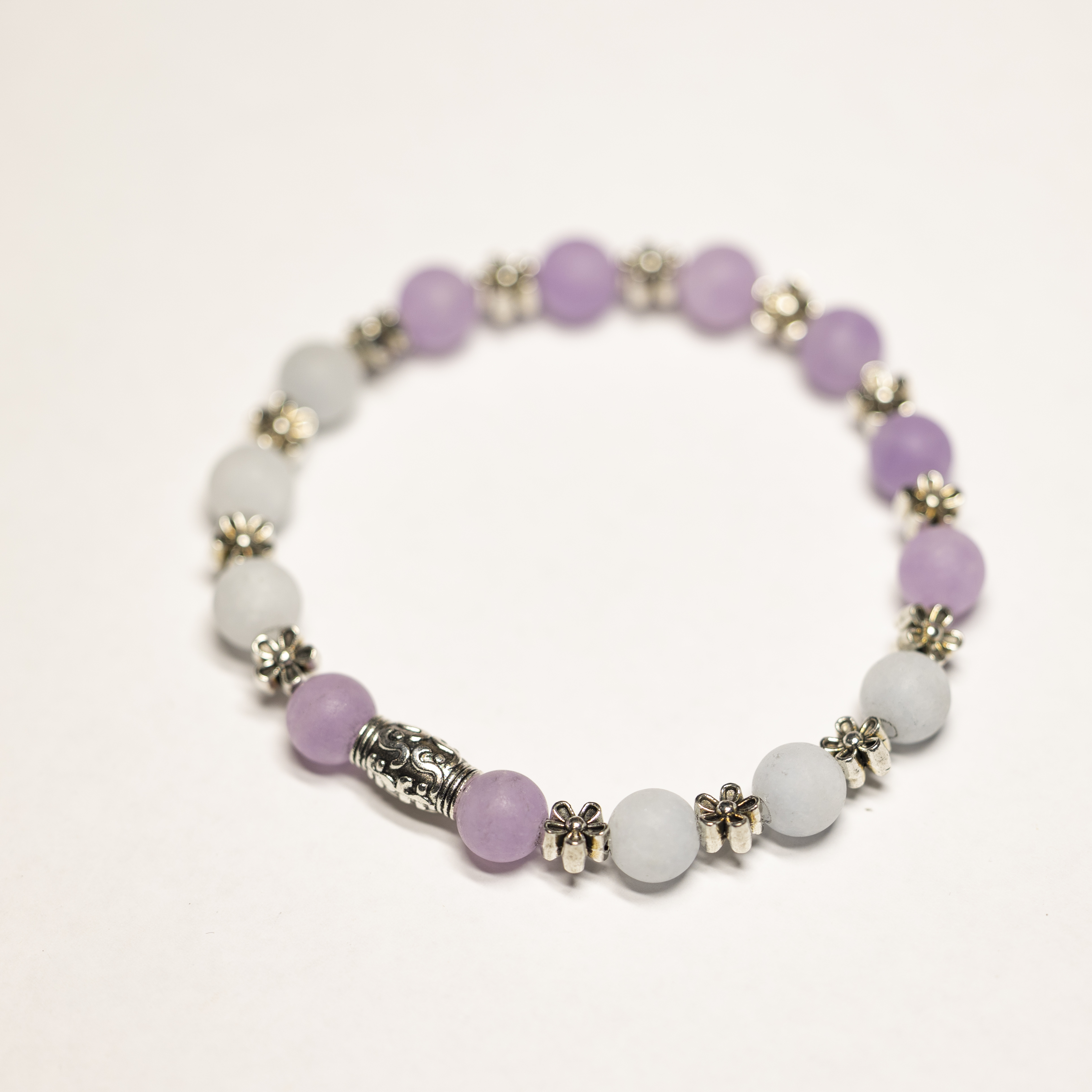 5606 Lila-Weisses Kunststein Armband 8 mm matt mit Blumen: 21.5 cm
